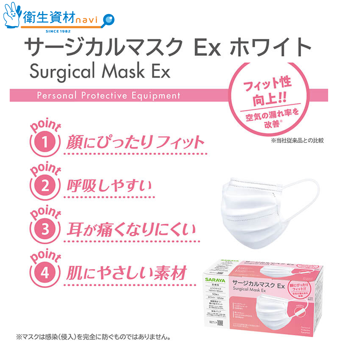 51023 サラヤ サージカルマスクEx 50枚 ホワイト (50枚×20小箱)